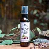 Pili Pulp Oil comes from the pili nut—known as Canarium ovatum— native to ocean regions of Southeast Asia. The dark-skinned fruits of the pili tree have hard shells and thick skin, and the kernel contains a high concentration of phosphorus, calcium, manganese, protein, fats, and potassium. Pili Pulp Oil comes from the *fruit pulp of the pili nut, processed through a mechanical press.